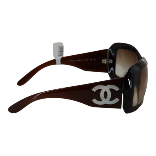 Chanel Brown Pearlescent Logo Sunglasses