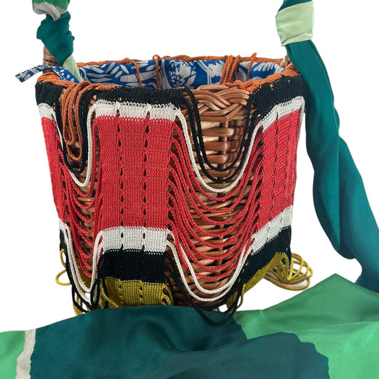 Missoni Fringed Crochet-Knit and Straw Bucket Bag