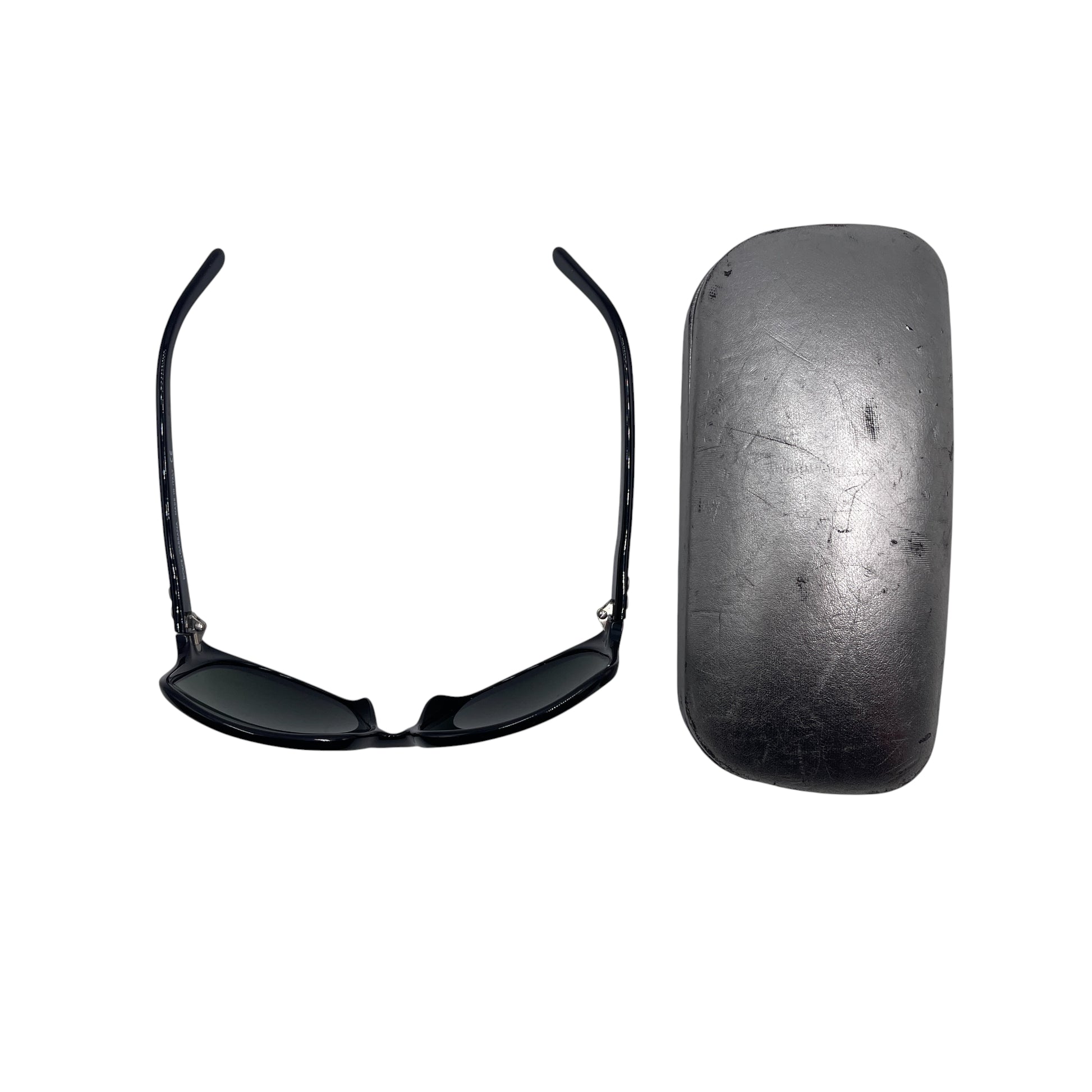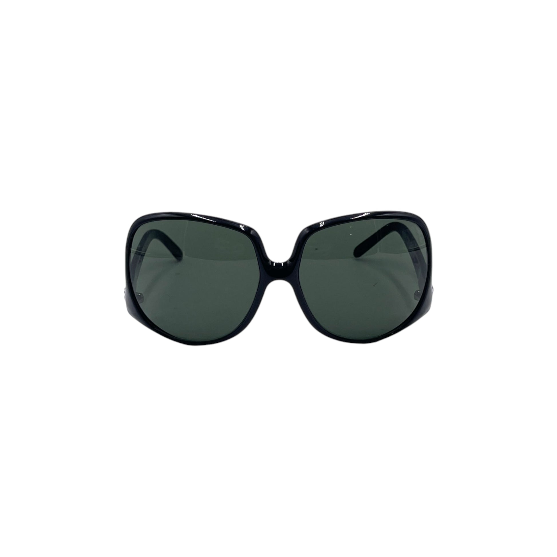 - Shiny black acetate frame