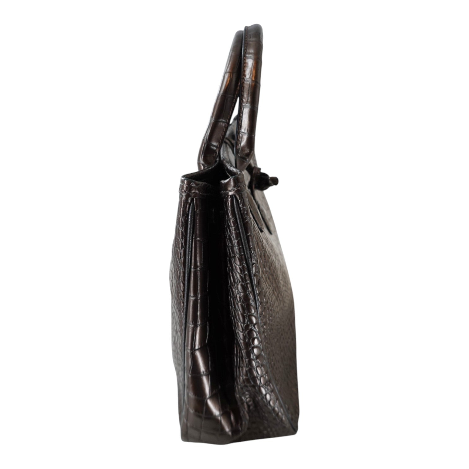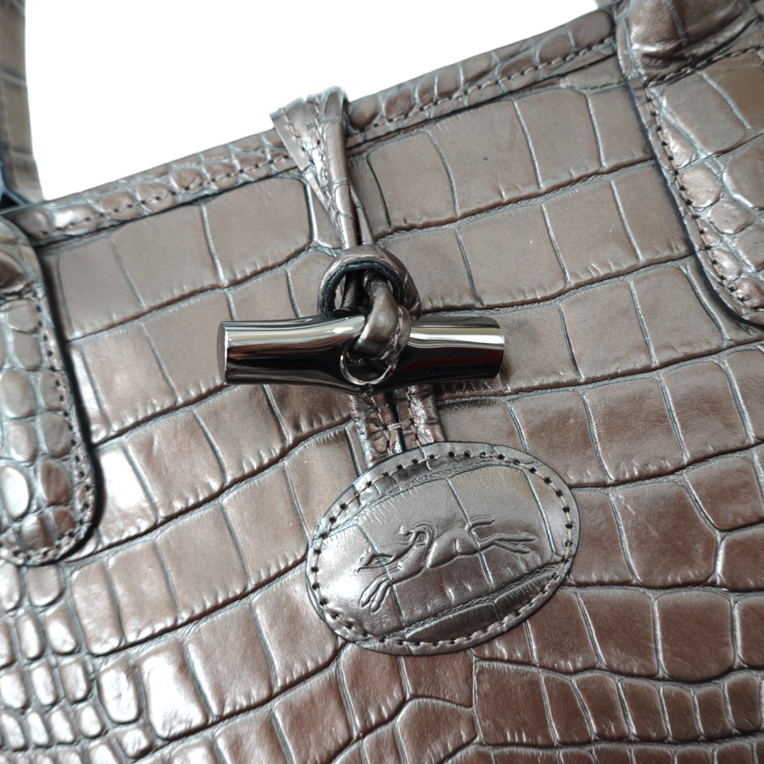 Longchamp Brown Croc-Embossed Calfskin Roseau Collection Tote